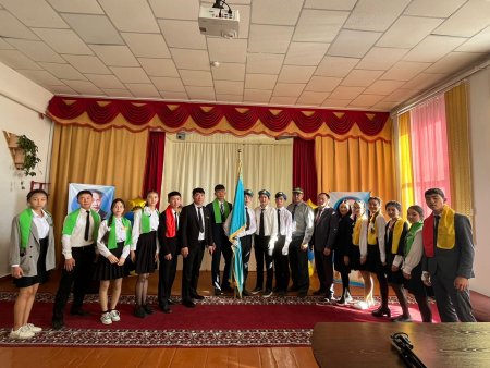 Ұлттық мәртебе" күніне орай 6 "А" сынып оқушылары үлкен үзіліс уақытында 5-7 сыныптар арасында ою- өрнектерді дәріптеу мақсатында