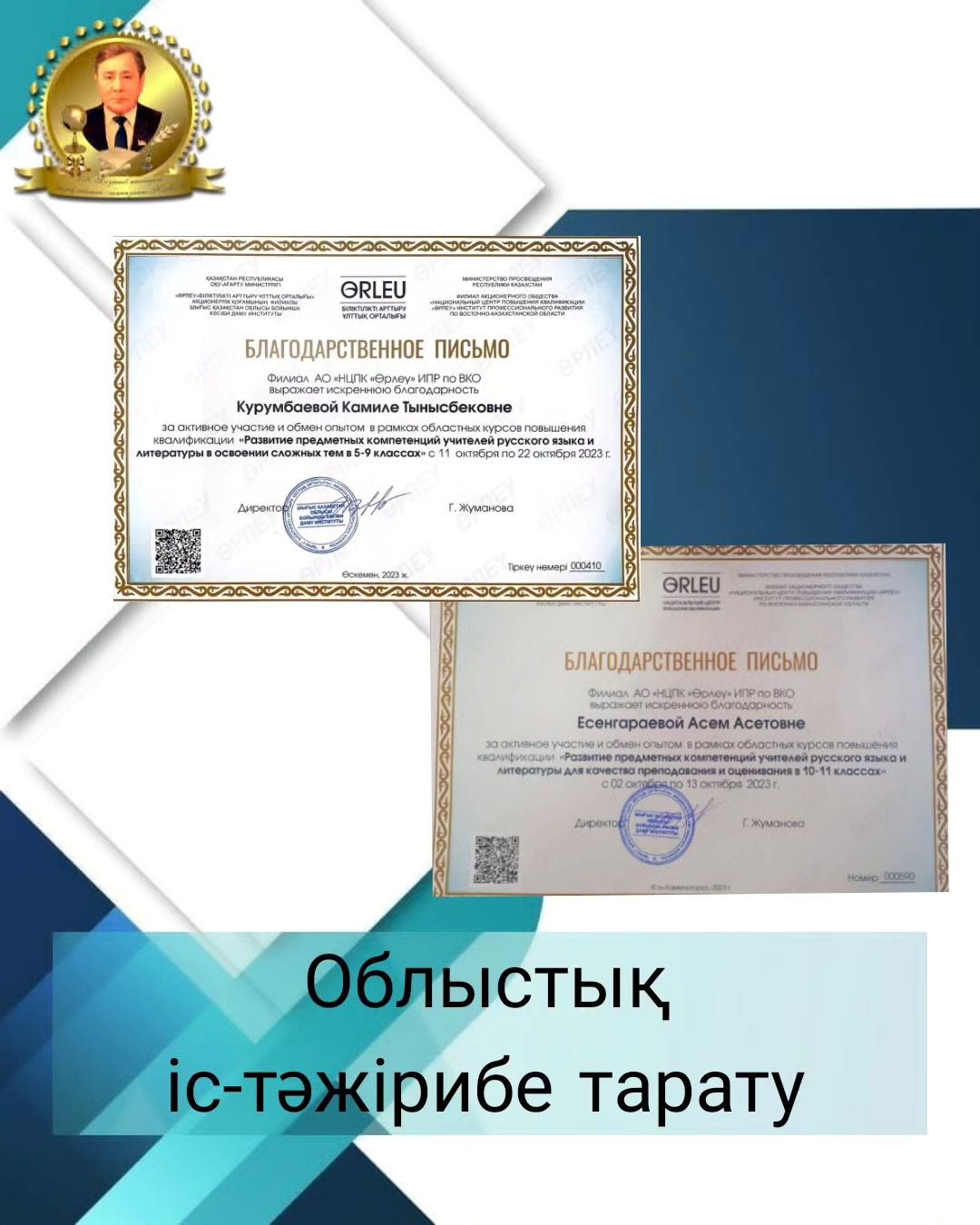 Ұстаздар мерекесіне орай мектебіміздің орыс тілі мен әдебиет пән мұғалімі, кәсіподақ ұйымының төрайымы «Қазақстандық оқу-ағарту, ғылым