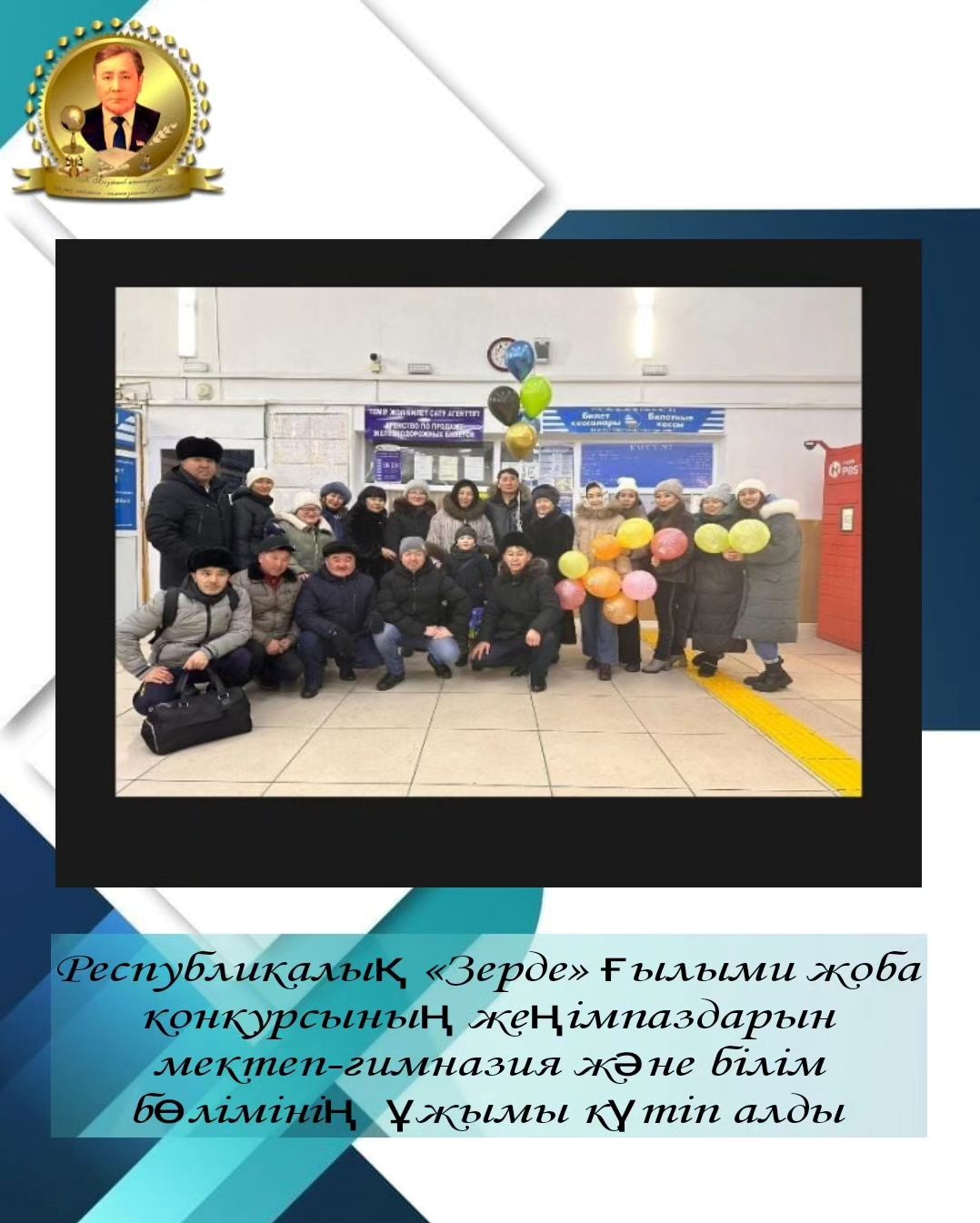 Республикалық «Зерде» ғылыми жоба конкурсының жеңімпаздарын мектеп-гимназия және білім бөлімінің ұжымы күтіп алды.