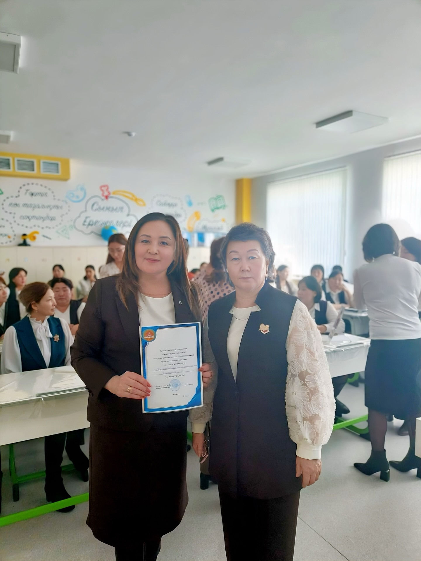 Бастауыш пән мұғалімдеріне арналған республикалық “Математикалық регата” олимпиадасының аудандық кезеңіне қатысып, 2 орын алған үшін Култаева Асем Молдагалиевна марапатталады.