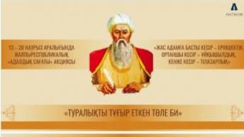 «Туралықты тұғыр еткен Төле би»тақырыбындағы онлайн-бейнедәріс барысында жастар Төле бидің осынша тарихи биік тұлға дәрежесіне жетуіне себеп болған тұлғалық қасиеттерімен танысты.