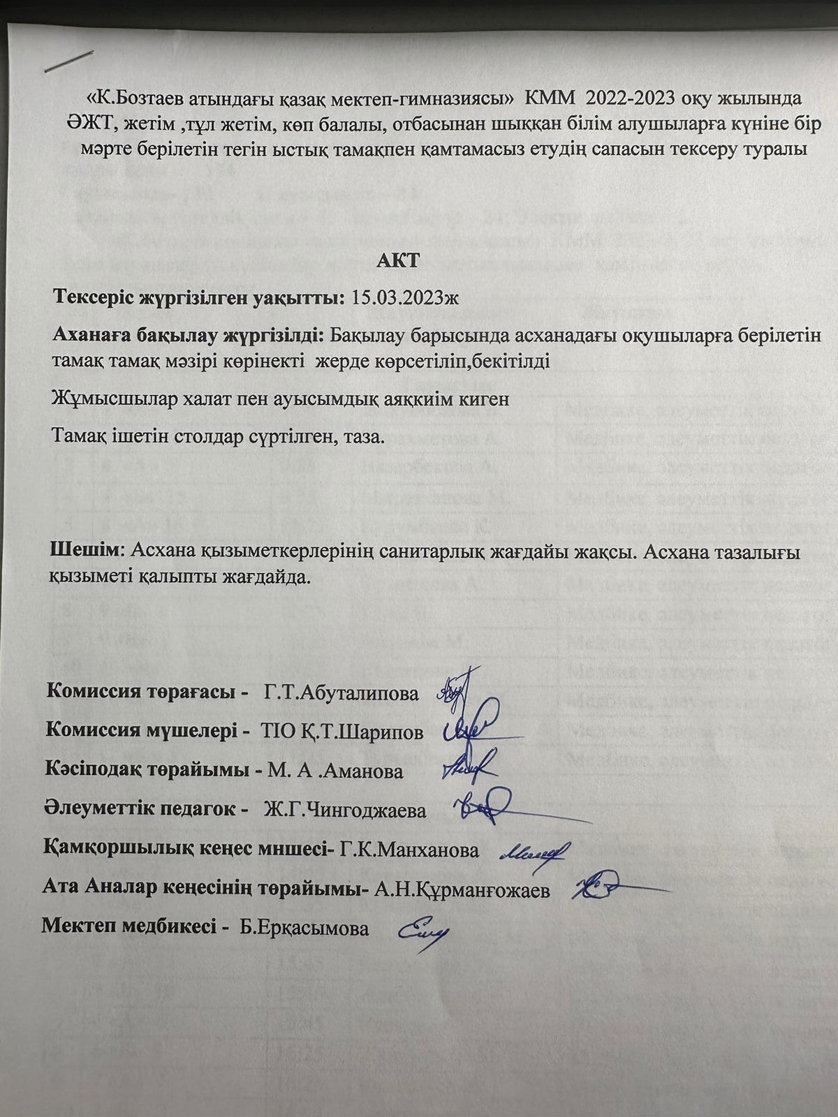 Мектеп сайты » Питание » Школьная питание за апрель-май 2023 г.