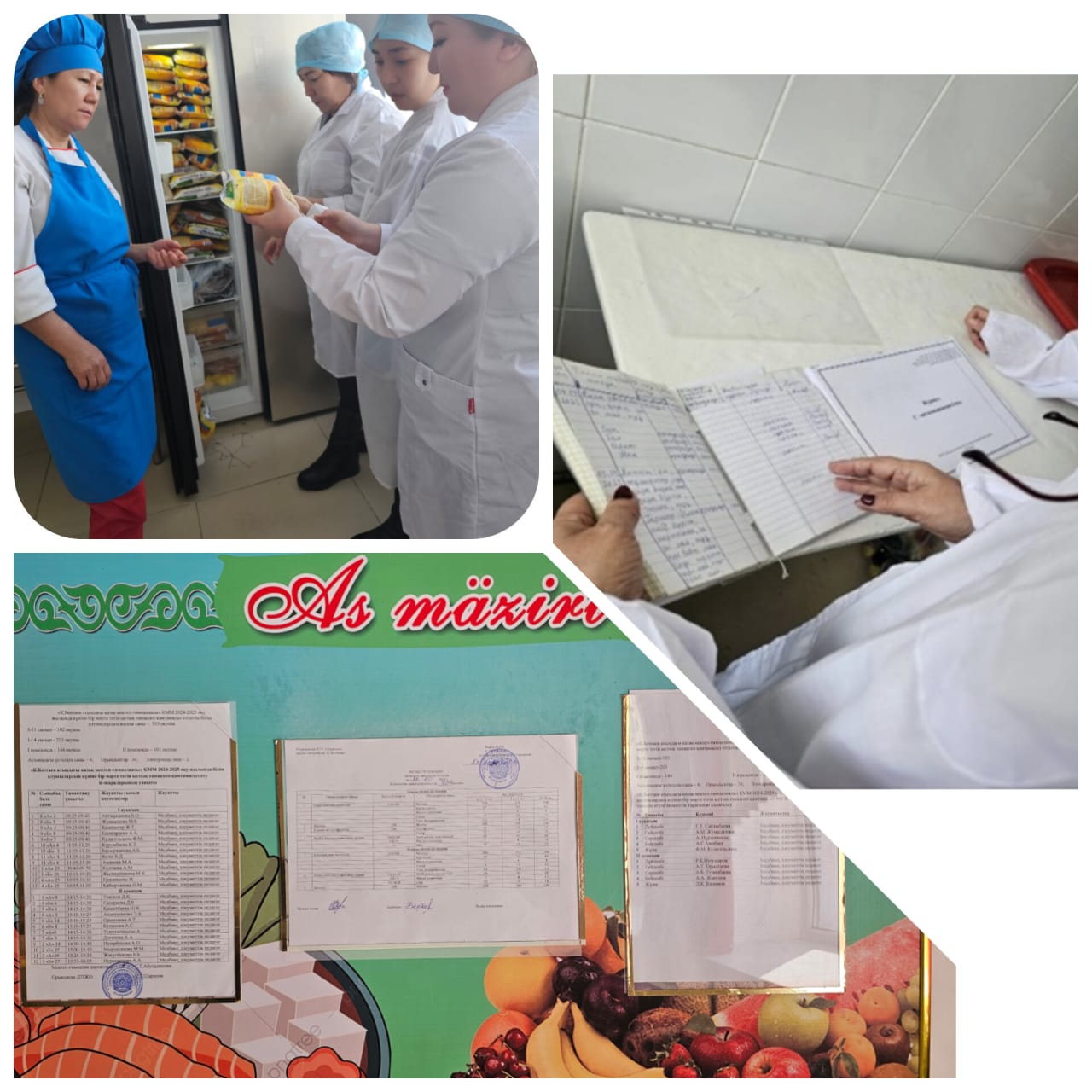 Асханаға бақылау жүргізілді: бақылау барысында асханадағы оқушыларға берілетін тамақ, ас мәзірі тексеріліп, бекітілді.