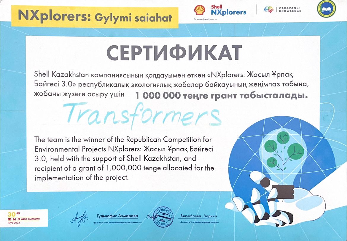 04.11.2023 жылы , Астана қаласында Shell Kazakhstan компаниясының қолдауымен өткен "NXplorers: Жасыл Ұрпақ Байгесі 3.0" республикалық экологиялық жобалар байқауының жеңімпаз тобына, жобаны жүзеге асыру үшін 1000000 теңге грант Абай облысы Аягөз ауданы "К.Бозтаев атындағы қазақ- мектеп гимназиясы" "КММ -нің" Transformers" тобы оқушылары Жаркенаев Ерсұлтан, Құрманғожин Дәулет, Бейсен Меруерт марапатталды. Жетекшілер:информатика пән мұғалімдері Туманбаева Ардак Бакытбековна, Дюсембекова Раушан Сапарбековна. Құттықтаймыз!!!