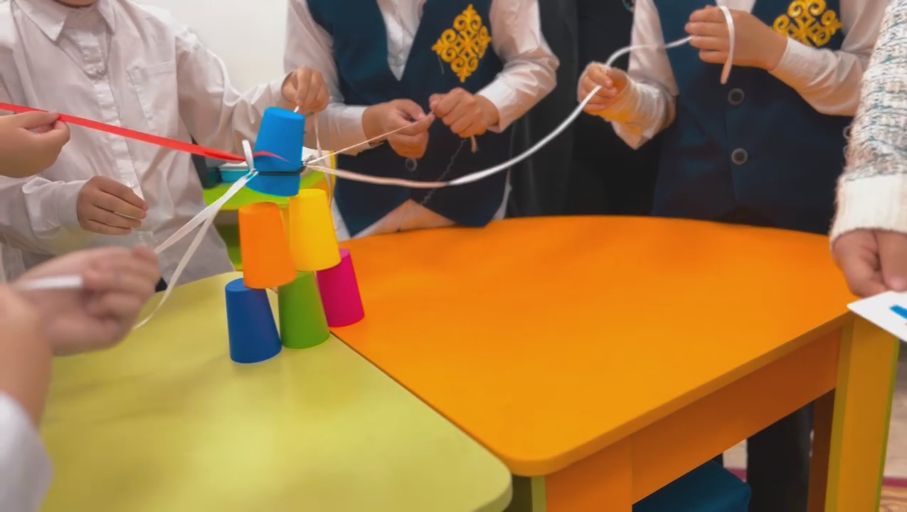 Ойын барысында оқушылар бір-біріне қолдау көрсетіп, топпен жұмыс істеудің маңыздылығын түсінді және жағымды көңіл-күй алды 🤝
