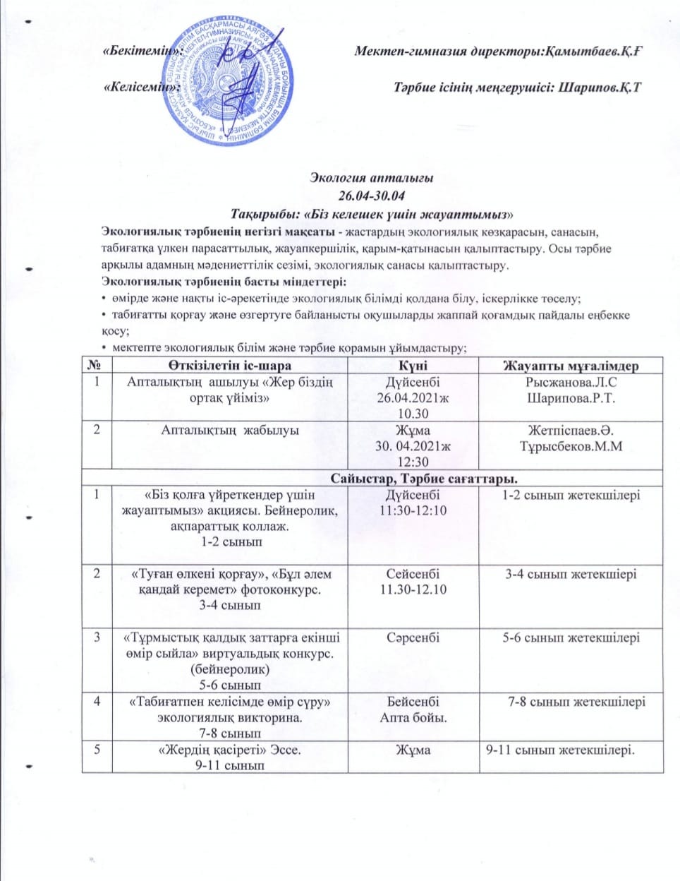 Мектеп сайты » Информация » Неделя экологии "мы в ответе за будущее" (день-1)