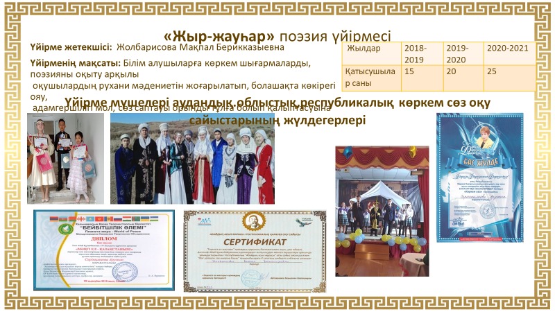 - Өз қабілеттерін шыңдау, шағармашылыққа баулу;