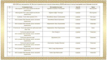 2019-2020 оқу жылындағы «К. Бозтаев атындағы қазақ мектеп-гимназиясы» КММ-нің педагог қызметкерлерінің аудан бойынша жетістігі
