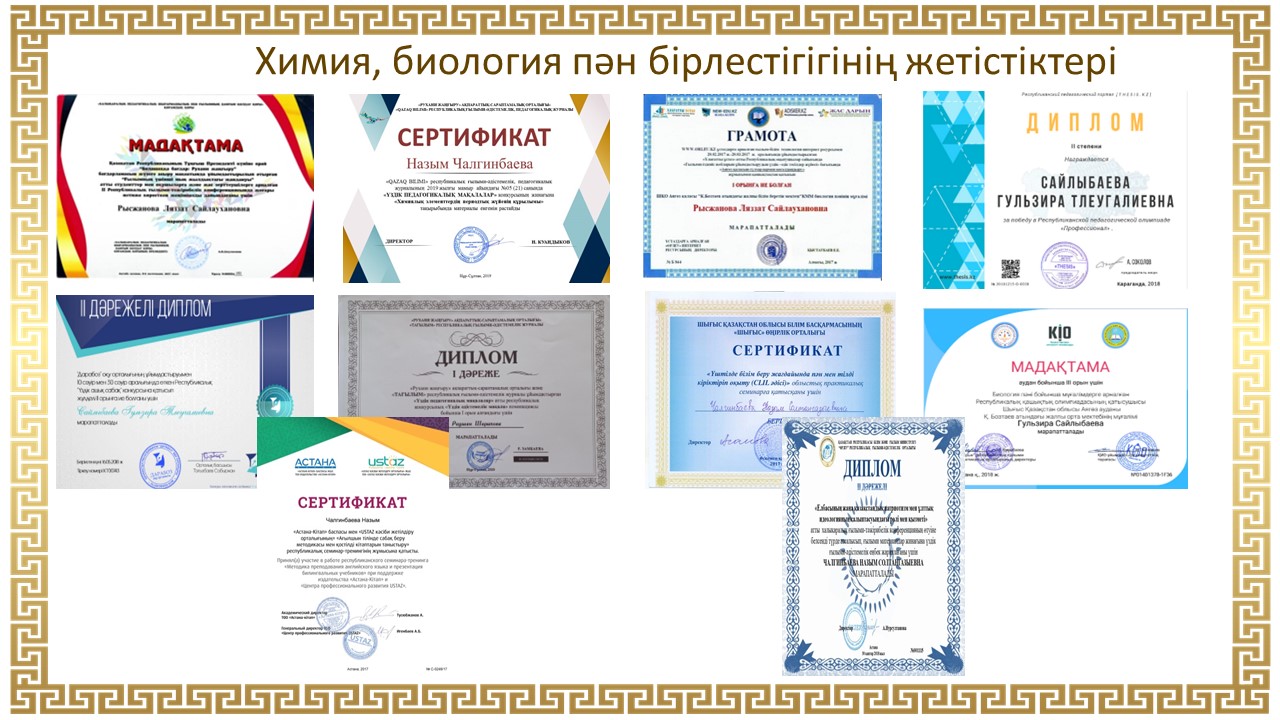 Химия, биология пән бірлестігігінің жетістіктері