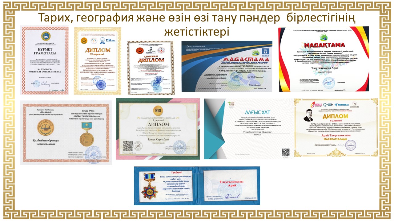 Тарих, география және өзін өзі тану пәндер бірлестігінің жетістіктері