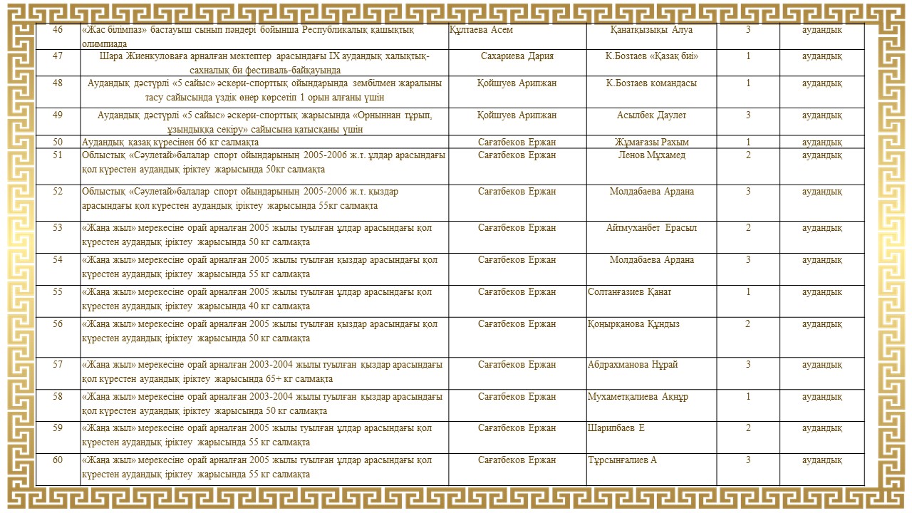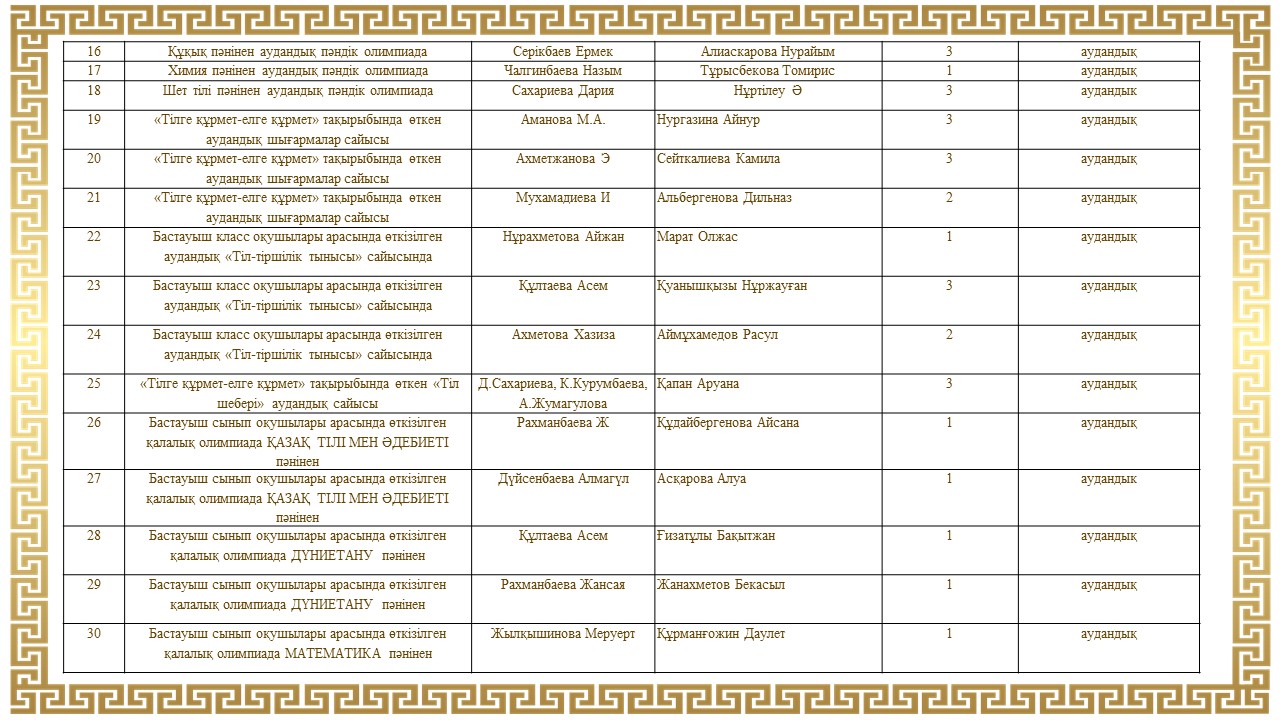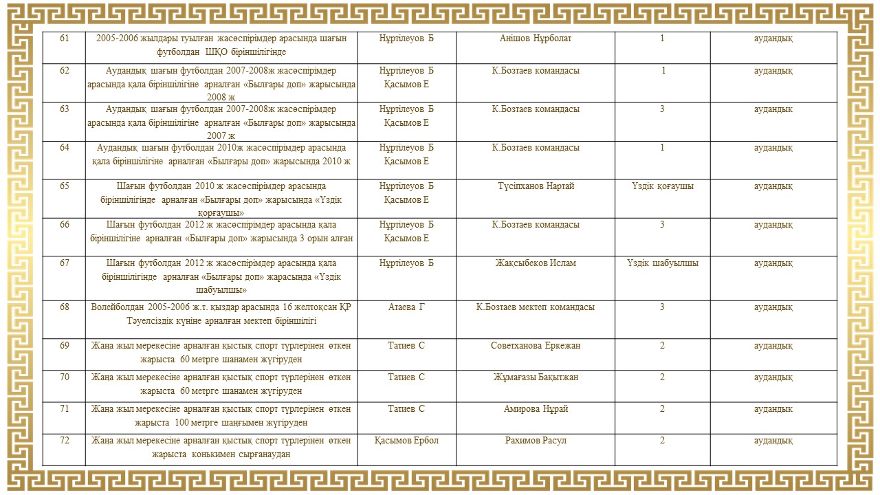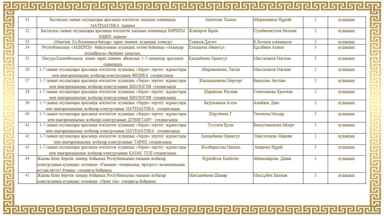 2019-2020 оқу жылындағы «К.Бозтаев атындағы ЖББОМ» КММ-нің аудан бойынша білім алушылар жетістігі