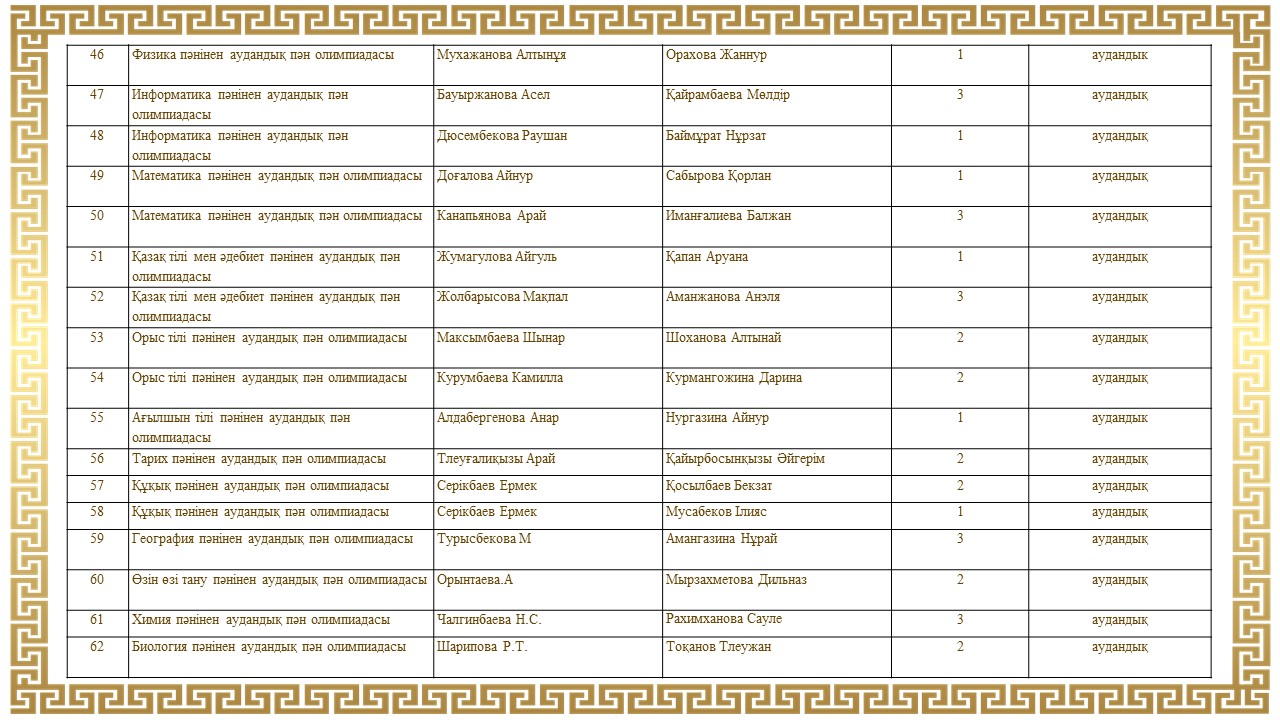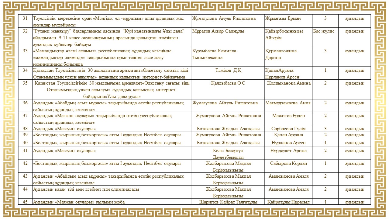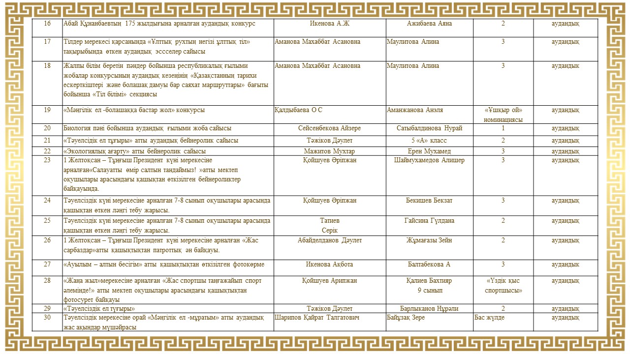 2020-2021 оқу жылындағы «К.Бозтаев атындағы ЖББОМ» КММ-нің аудан бойынша білім алушылар жетістігі