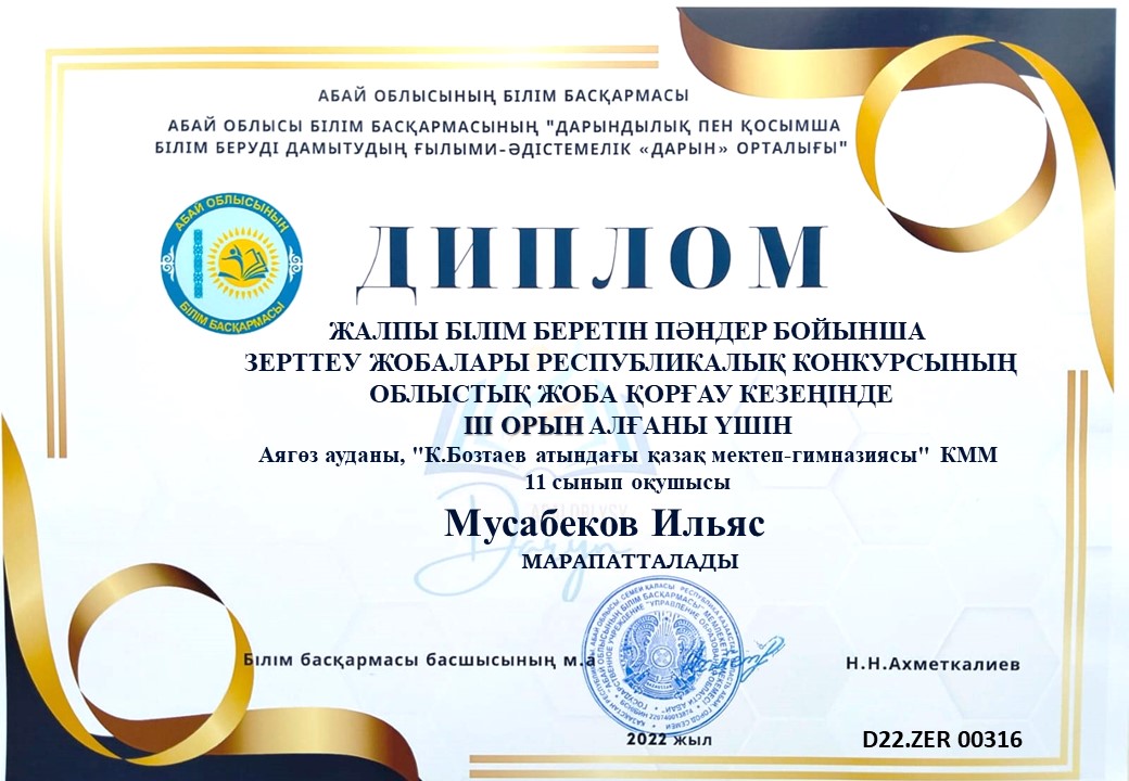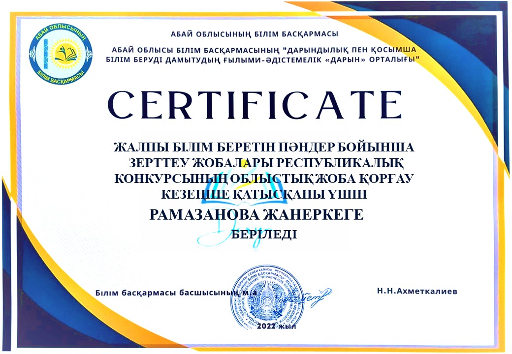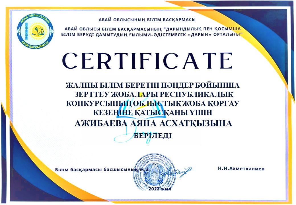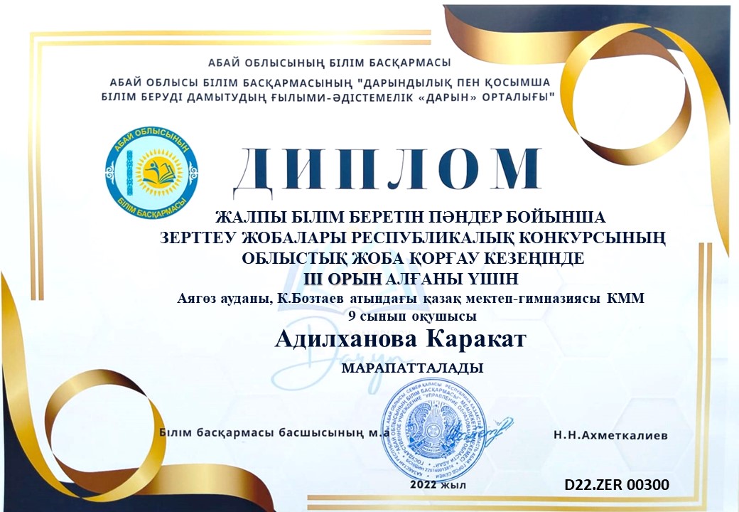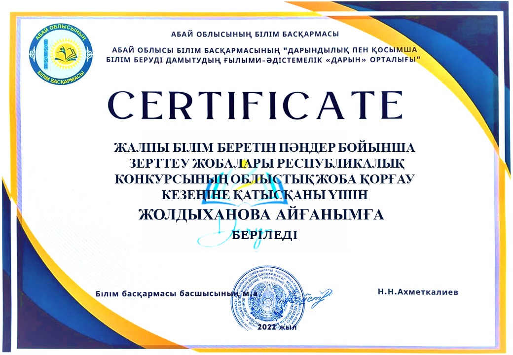 Оқушылардың облыстық ғылыми жобалар жетістіктері