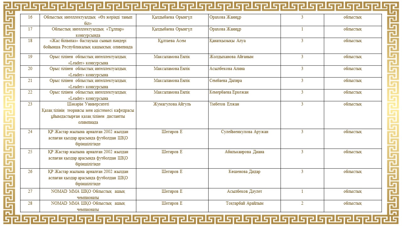 2019-2020 оқу жылындағы «К.Бозтаев атындағы ЖББОМ» КММ-нің облыс бойынша білім алушылар жетістігі