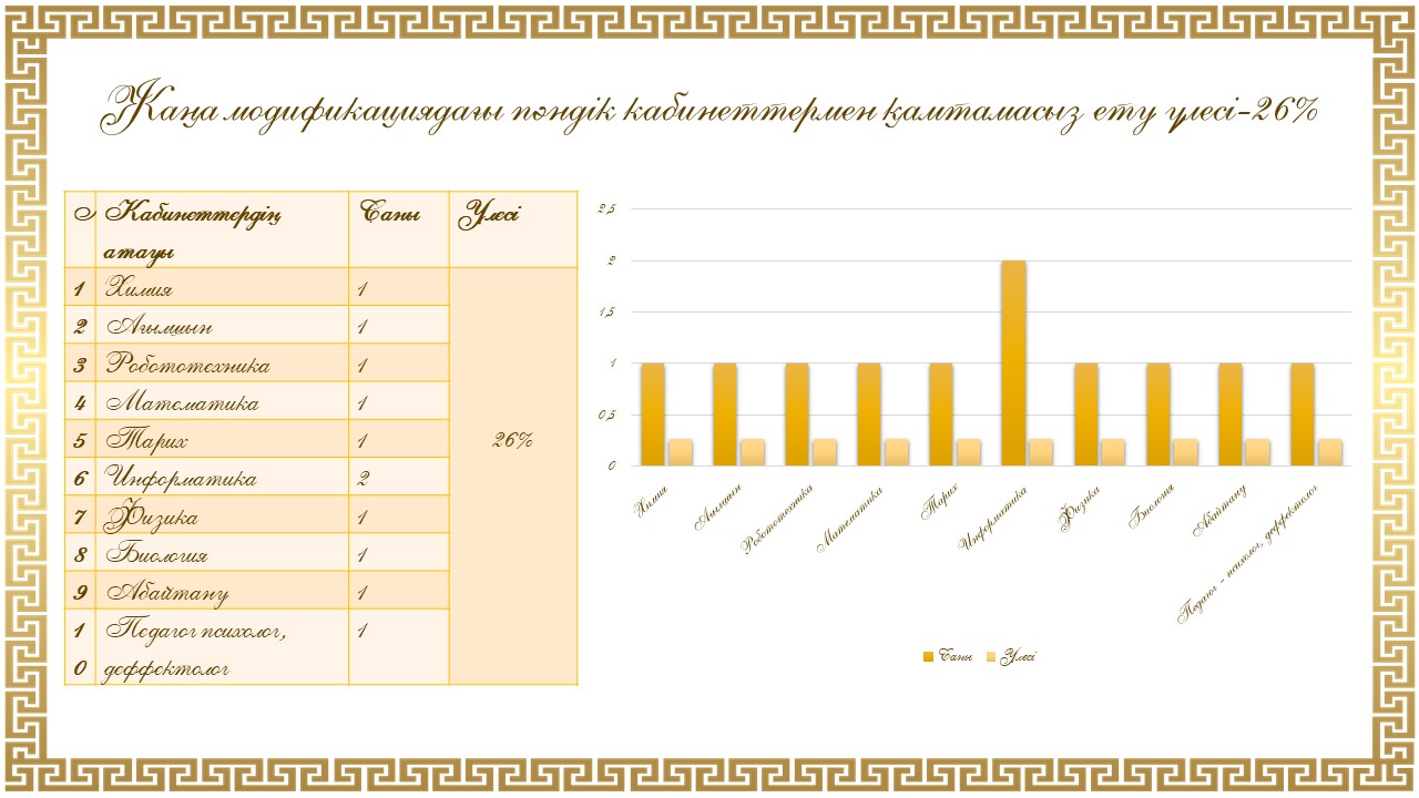 Жаңа модификациядағы пәндік кабинеттермен қамтамасыз ету үлесі-26%