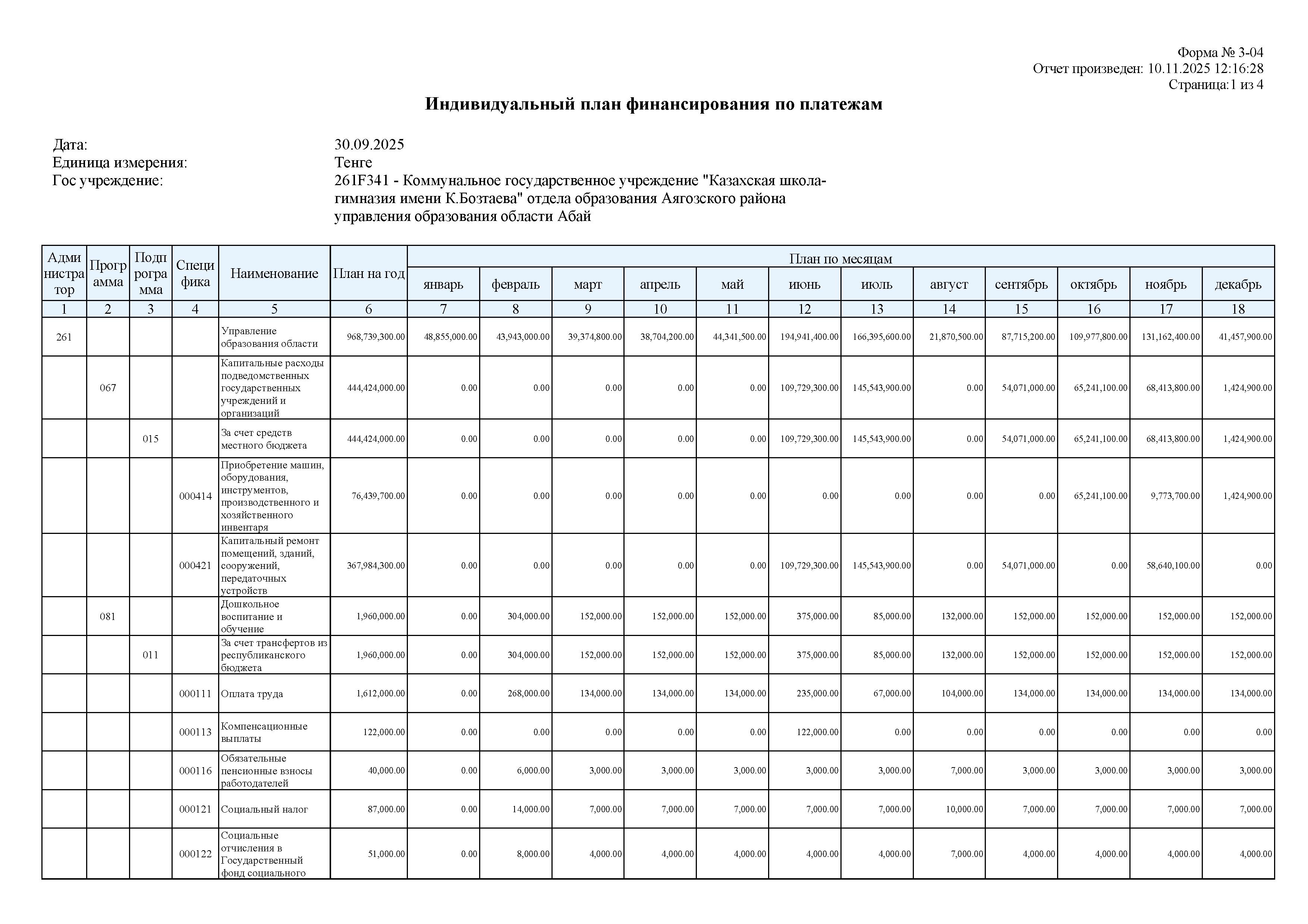 Мектеп сайты » Открытый бюджет » Индивидуальный план финансирования » Индивидуальный план финансирования по платежам (2 квартал 2025 года)