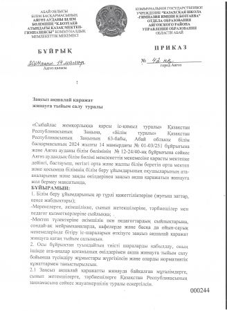202 2 -202 3 оқу жылында "К.Бозтаев атындағы қазақ мектеп-гимназиясы"КММ «Сыбайлас жемқорлыққа қарсы күрес» бағытында жасалған